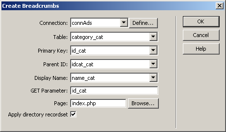 To be able to follow this section of the tutorial, you need to have downloaded and installed MX Breadcrumbs. This is a free Dreamweaver extension, which you can download here.