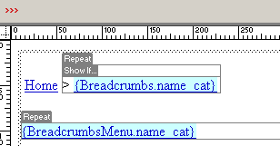 Now click in the newly created row, and apply the Create Breadcrumbs command from the InterAKT tab of the Insert panel.