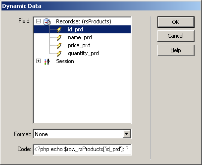 icon. Select the id_prd field of the rsProducts recordset: