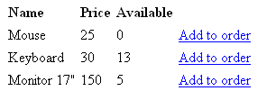 Now that the product list page is completed, you can continue and create the logic in the add_to_order page, that will add a new element to the order.