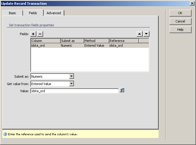 In the Fields tab, you can decide which table columns will be involved in the update transaction and where each of them will take their value from.