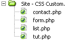 Besides these files that are the actual pages that will be viewed from the browser, some more files and folders will appear in your site structure: