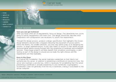 The NeXTensio list and form, as well as the contact form will replace the section containing text in the image above. However, none of the existing skins match the selected design. None of the skins use green for buttons or backgrounds.