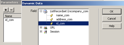 id, so only the associated contacts will be displayed. Press the Parameters button, and add the id_com