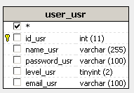 amongst sites that have user authentication. It only uses one table (user_usr) with the structure depicted below: