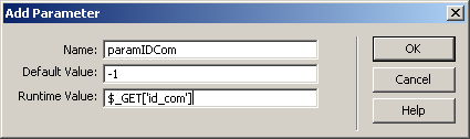 Note: For ColdFusion, add <cfoutput>#URL.id_com#</cfoutput> in the