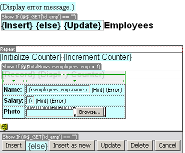 Uploading images - when an employee is added or updated. This is done with the Upload and Resize Image server behavior.