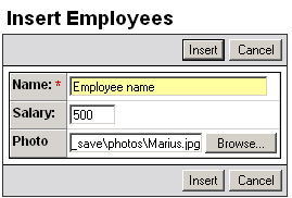 To allow the upload of a photo for each employee, you need to add to the NeXTensio form a new form field. You also have to add the logic that uploads the image files to the server. To do so, follow the next steps: