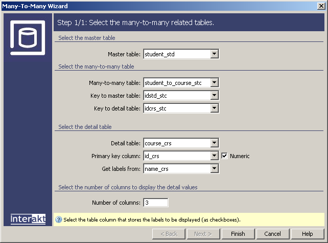 For the detail table, the primary key is held in the id_crs column and the names of the courses (the labels) are held in the name_crs column.