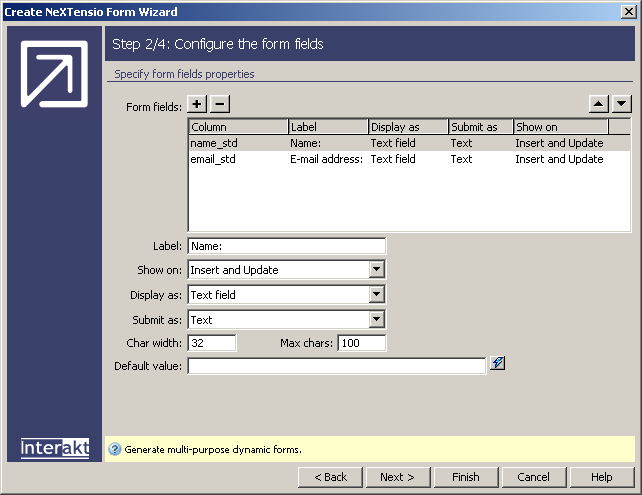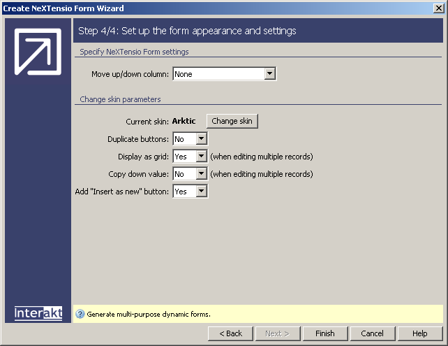Click Finish to apply the Create NeXTensio Form Wizard.