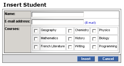 In this tutorial topic you will create the page that contains the NeXTensio form. It will allow you manipulate the students, and also the courses they register to - in this regard, the Many-To-Many Wizard will be applied on the page.