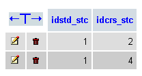 Check for yourself and see how the records in the student_to_course_stc table are updated: the rows corresponding to the unchecked courses will be deleted, and new rows will be added corresponding to the new courses that you check.