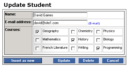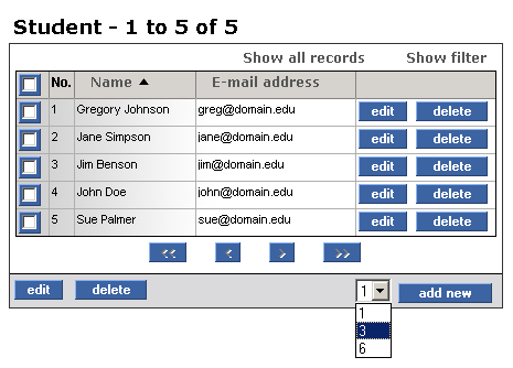 Now that the NeXTensio list and form are built, let's observe their browser behavior by using them to add, edit or delete students and the courses they registered to.