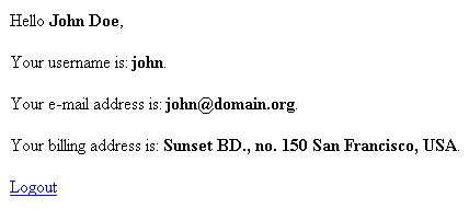 By following this very simple tutorial, you learned how to use session variables in order to display information about the currently logged-in user.