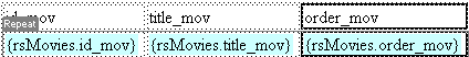 In the Recordset drop-down menu select the rsMovies item.