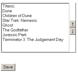 Once movies are entered in a database (you can create a page that performs the insert easily, with the Insert Record Form Wizard), you must have a way to change the default order. For this you will use the List Sorter widget in the change_order page: