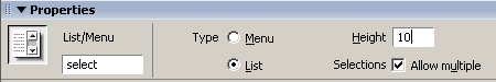 Add a list/menu form element from the Forms