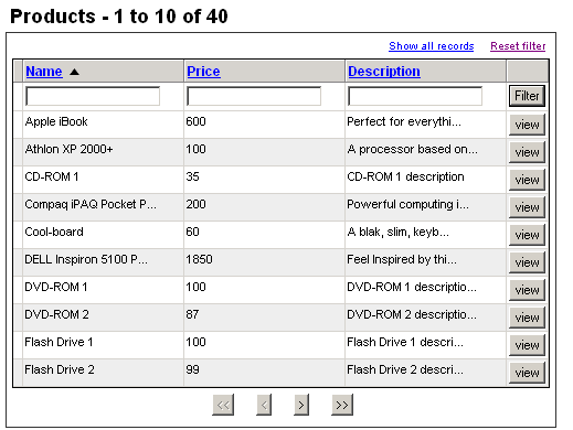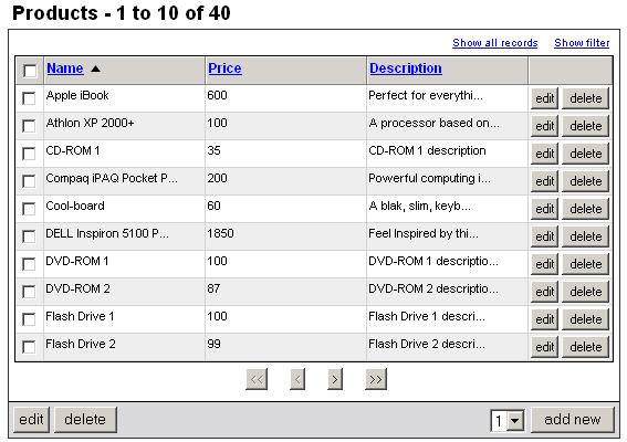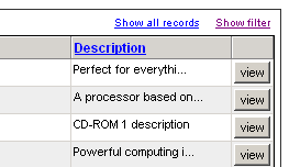 In order to make the list suitable for public pages, you must remove all the buttons and checkboxes. Replacing the edit and delete buttons next to each record, a button to display product details will be created. To do so without affecting the list's functionality, follow the instructions below: