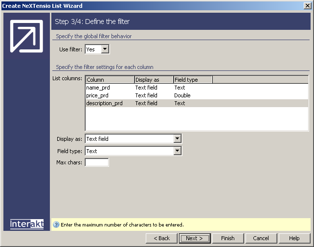 Start the Create NeXTensio List Wizard from the MX Kollection tab of the Insert bar. The wizard is divided into four steps, which must be configured.