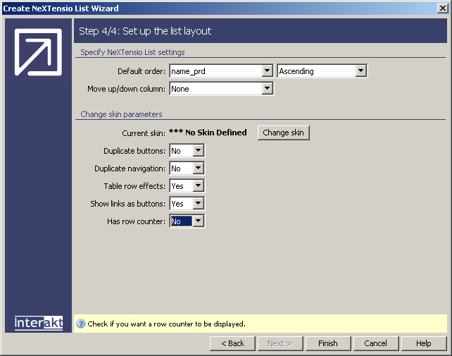 The last option to change is Has row counter. Select No in the drop-down menu.