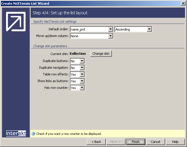 Go to the MX Kollection tab of the Insert bar and click on the Create NeXTensio List Wizard icon. The wizard is divided into four steps which must be configured.