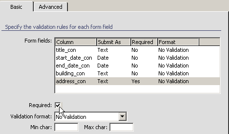 To build this page, you must first build the basic insert form, with no special validation options. These will be configured afterwards.