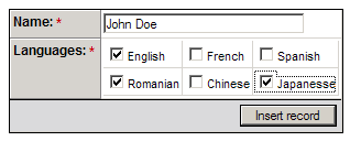 After creating the basic form you will notice that in order to set the languages that one student wants to learn you have to manually enter their ID's. And this is highly unpractical - you would need to know the exact ID's by heart. To make it easier, the text field will be replaced with a group of checkboxes - each corresponding to one entry in the language_lan table.