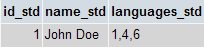 After adding a new record, the languages_std column of the student_std table will contain the values of the id_lan columns for the checked options: