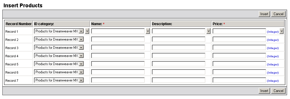 Another way to edit the number of records in a multiple insert is accomplished by following the next steps: