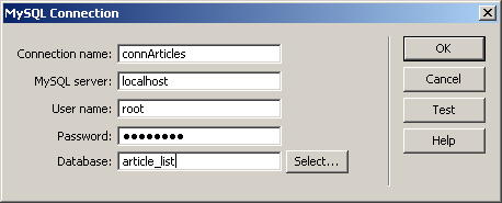 Once you have created the database and its table, open the site's index and create a new Dreamweaver