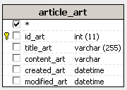 As you can notice in the image above, the creation and modification dates are stored as different fields. One of them (the creation date) will have to be automatically completed when an article is added, and the other, when the record is updated (the modification date). The modified field will store only the date of the last change.