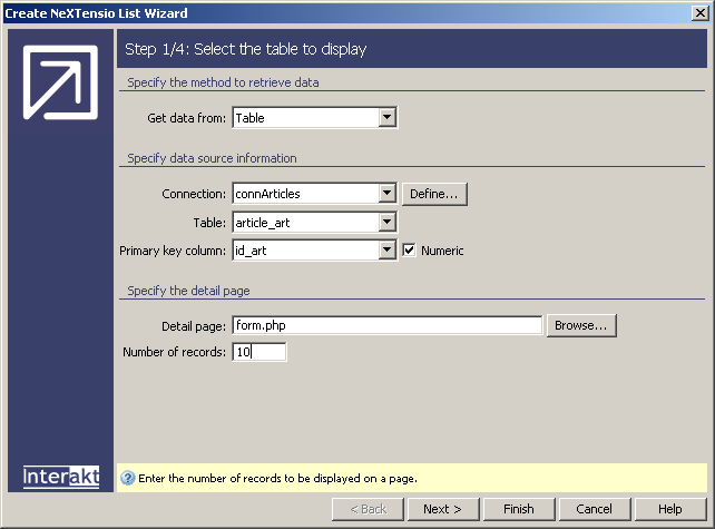 In this tutorial topic you will create a NeXTensio list that will allow displaying articles already existing in the database. Aside the actual list, elements that allow manipulating the records are added as well: add, update or delete buttons, either for individual or multiple records.